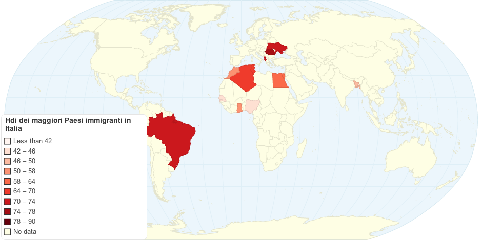 This map shows the HDI of the most 12 immigrant countries in italy in 2009.