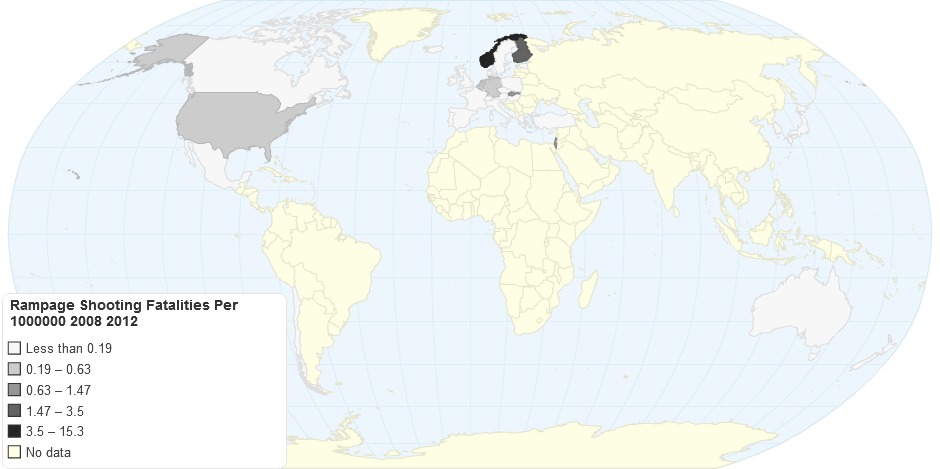 rampage shooting fatalities per 1,000,000 people in OECD member nations for the time period January 1, 2008 through December 31, 2012