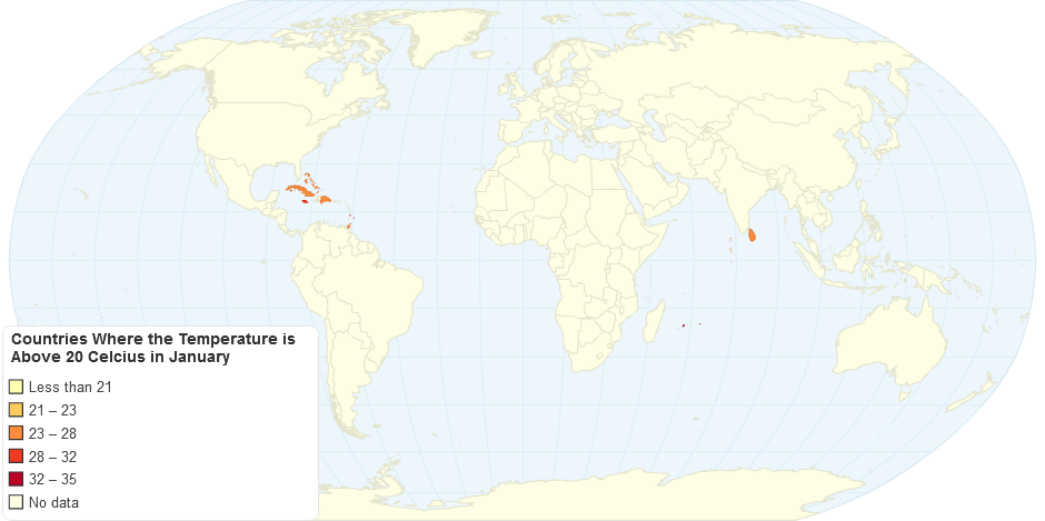 This interactive map shows the countries where all inclusive holidays are available that have average temperatures above 20°C in January.