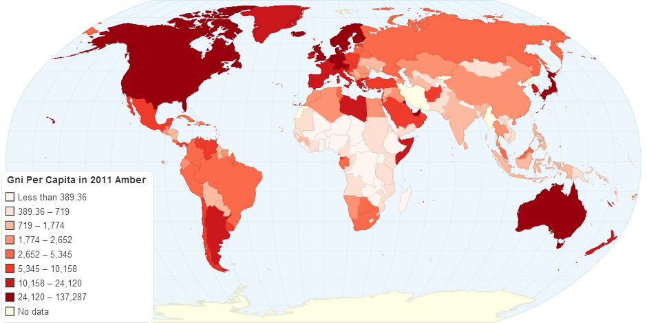 GNI per capita is gross national income divided by midyear population. GNI (formerly GNP) is the sum of value added by all resident producers plus any product taxes (less subsidies) not included in the valuation of output plus net receipts of primary income (compensation of employees and property income) from abroad. Data are in constant 2000 U.S. dollars.