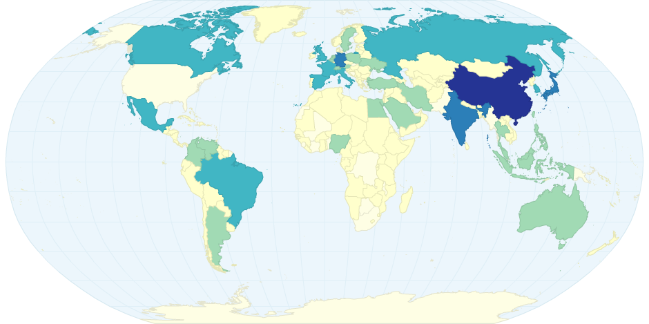 PIB de la mayoria de los paises en 2001.