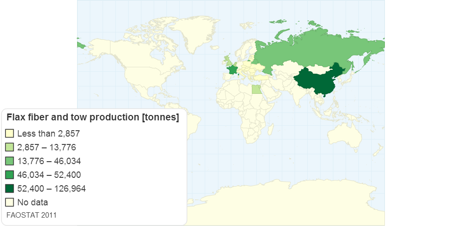 Flax fiber and tow production [tonnes] after FAOSTAT 2011.