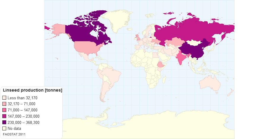 Linseed production [tonnes] worldwide in 2011. After FAOSTAT.