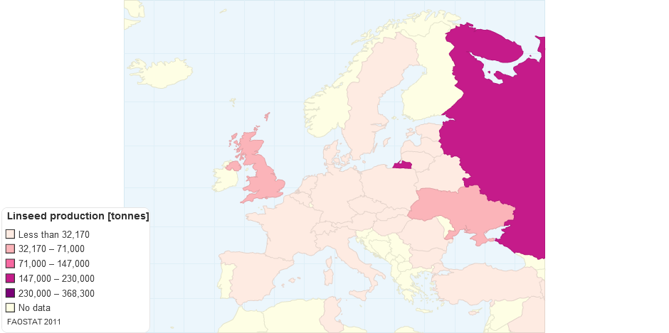 Linseed production [tonnes] in Europe in 2011. After FAOSTAT.