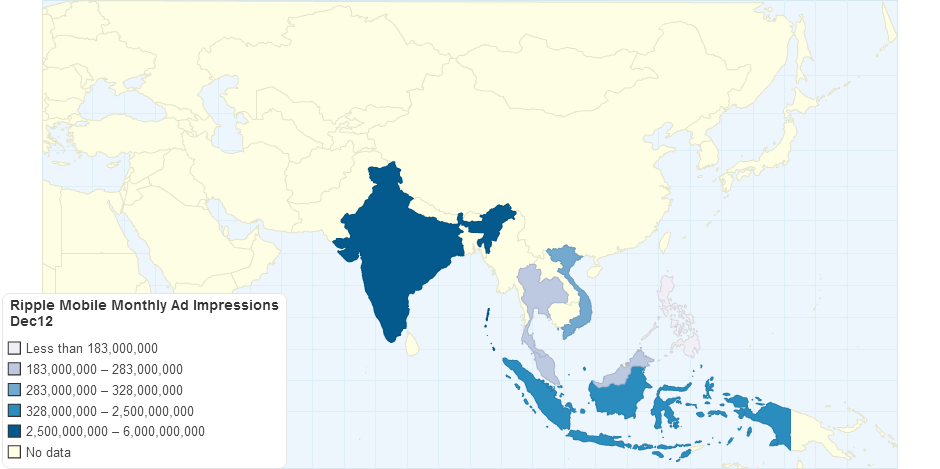 Ripple Mobile monthly ad impressions by country for Dec 2012