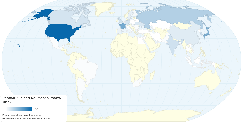 Reattori nucleari nel mondo e contributo dell'energia nucleare alla produzione di energia elettrica nazionale.