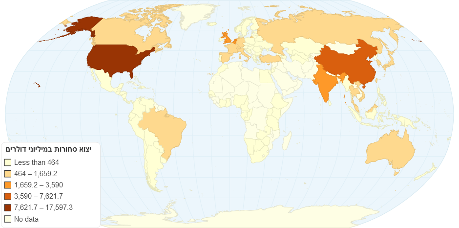יצוא לפי ארצות בשנת 2012, מיליוני דולרים