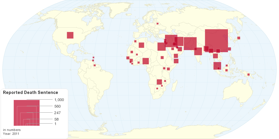 This map shows number of death sentence given in 2011.