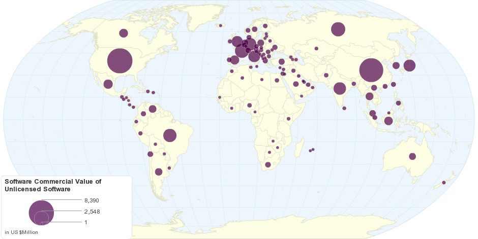 This map shows software commercial value of unlicensed software.