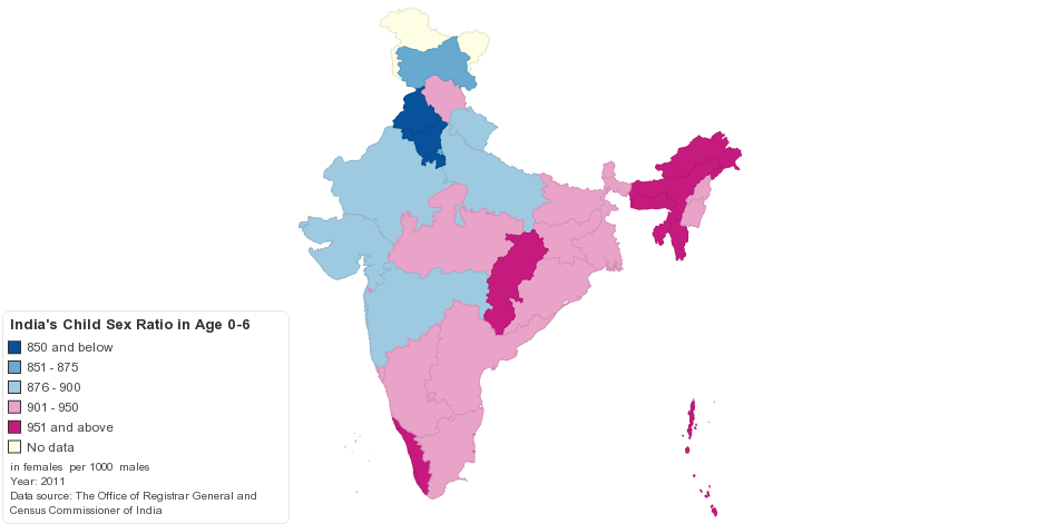 India's Child Sex Ratio: 914 females per 1000 males (2011)