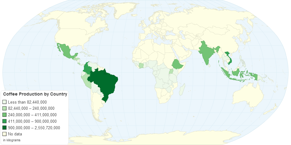 There are more than 50 countries involved in the world's coffee production, but more than half of it is grown in just three countries: Brazil, Vietnam and Colombia.