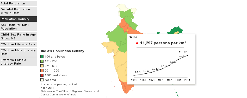 This map shows current population of India in 2011 census. Census 2011 is the 15th Census of India since 1872. Office of the Registrar General and Census Commissioner, India published provisional population totals for Census 2011 on 31-March-2011 ...