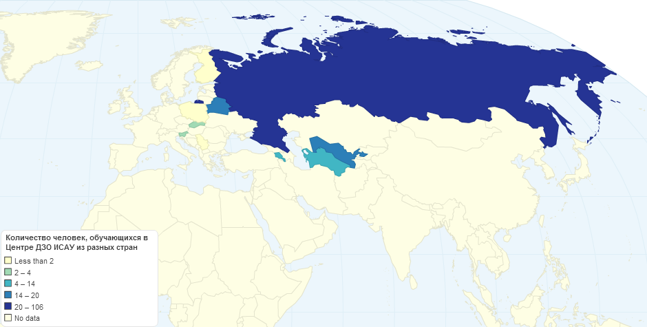 Количество человек, обучающихся в Центре ДЗО ИСАУ из разных стран