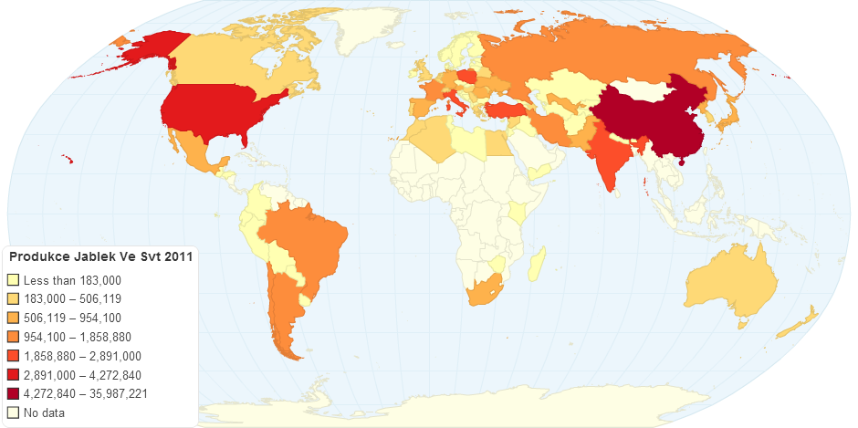 Produkce jablek po celém svÄ›tÄ› v roce 2011.