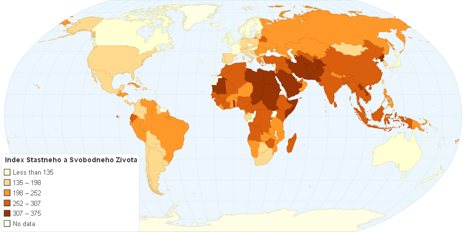 Index znázorňuje míru svobody a šťastného života v jednolivých státech světa. Je vytvořen z několika indikátorů: zákonným věk odchodu do důchodu muže v soukromém sektoru, zákonnou svobodu homosexuality, občanskou svobodu, global hunger indexem, náboženskou svobodu, bezbožností a spokojeností se sociální podporou v daném státě. Každý indikátor má v indexu svoji váhu: zákonný věk odchodu do důchodu muže v soukromém sektoru (5%), zákonná svoboda homosexuality (5%), občanská svoboda (25%), global hunger index(10%), náboženská svoboda (25%), bezbožnost (20%), spokojenost se sociální podporou v daném státě (10%). Nejnižší hodnoty indexu vyjadřují země, ve kterých jsou lidé nejsvobodnější a mohou zde prožít šťastný život. Nejtmavší barvou jsou znázorněny země, kde je situace ohledně svobody a šťastného života nejhorší.