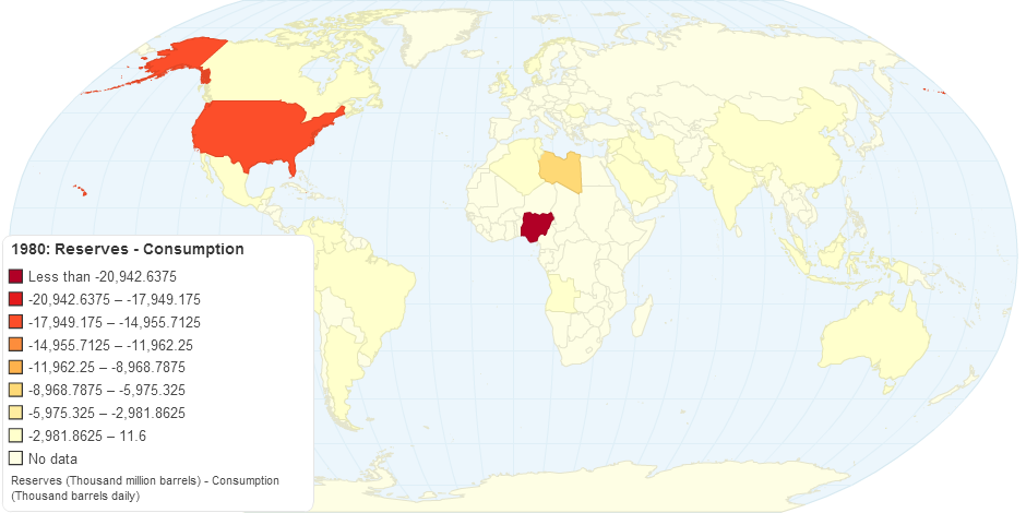 Reserves (thousand million barrels) - Consumption (thousand barrels daily)