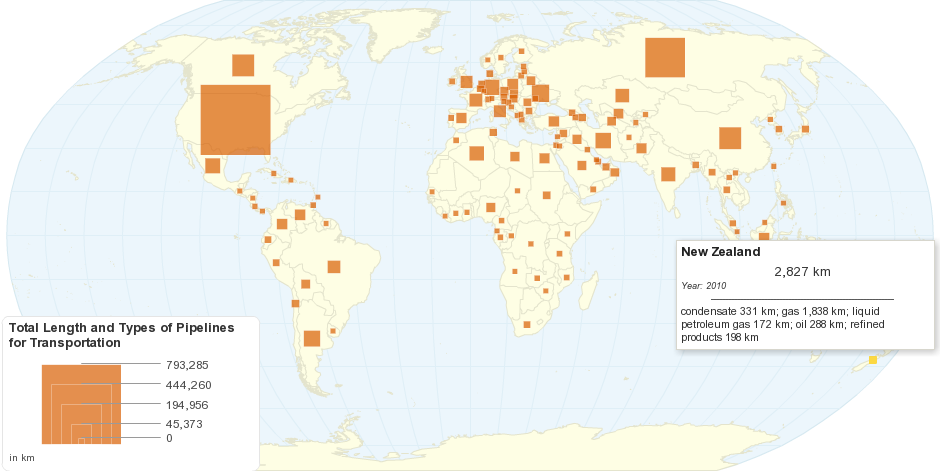 This map shows list of countries by total length and types of pipelines for transporting products like natural gas, crude oil, or petroleum products.