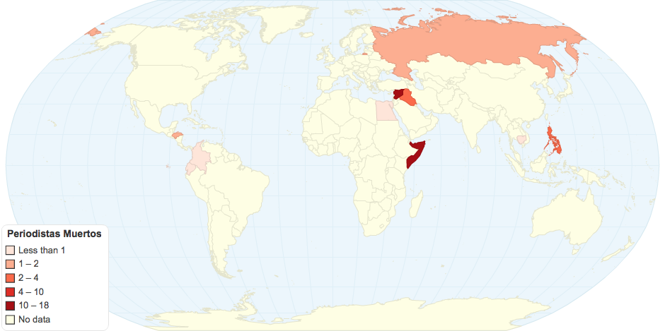En este mapa encontrarás el número de periodistas que han fallecido incluído el país donde perdieron la vida.