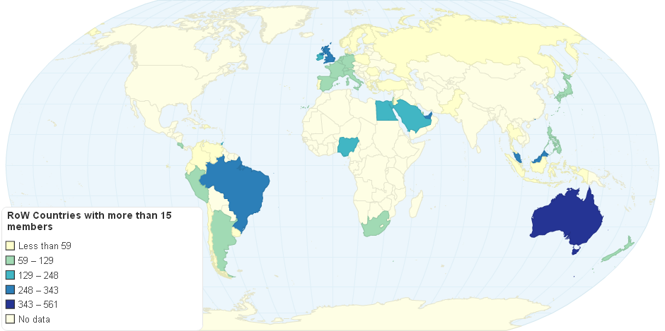 Countries with 15 or more members