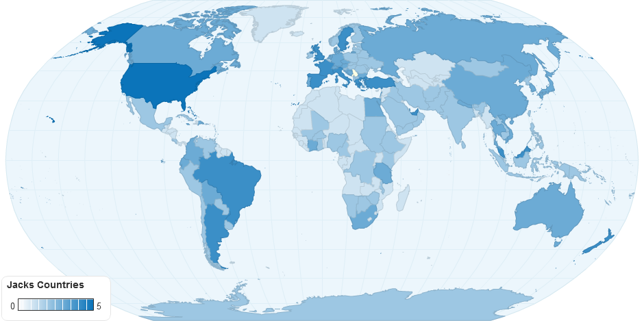 These are the countries that I want to visit. The higher the number, the more I want to go there.