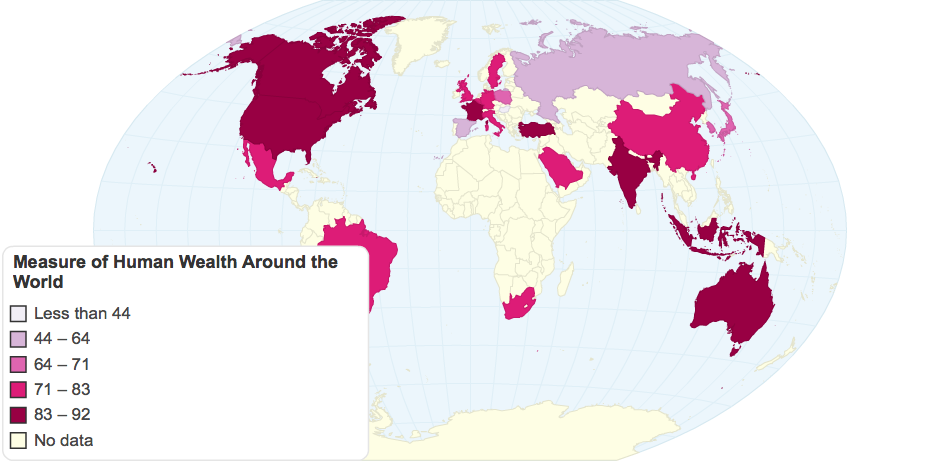 This map shows how countries around the world rank in terms of physical and spiritual wellness. Data provided by the U.N.