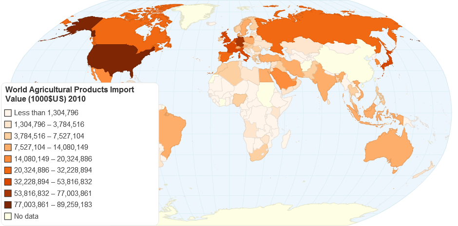 World Agricultural Products Import Value (1000$US) 2010