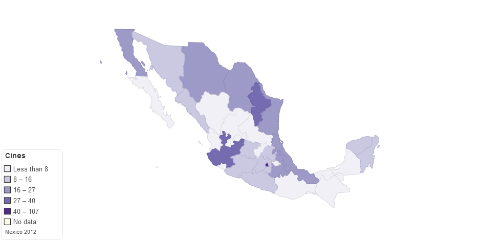 Informacion de los cinemas en el año 2012 en Mexico.