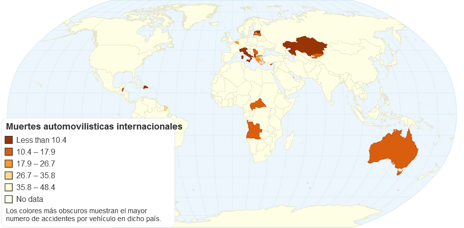 Los paises con color más fuerte son los de mayor tasa de accidentes.