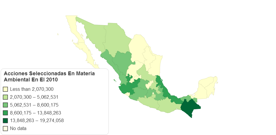 Acciones seleccionadas en materia ambiental en el 2010, Instituto Nacional de Estadística y Geografía (INEGI) http://sc.inegi.org.mx/sistemas/cobdem/contenido.jsp?rf=false&solicitud=, viewed 10th June, 2013.