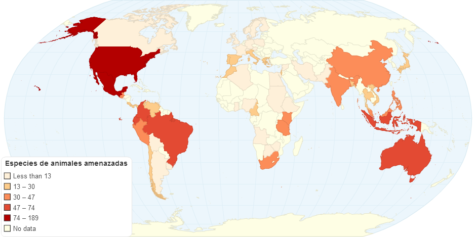 Especies de animales amenazadas, segun categoria de riesgos por paises seleccionados, 2006