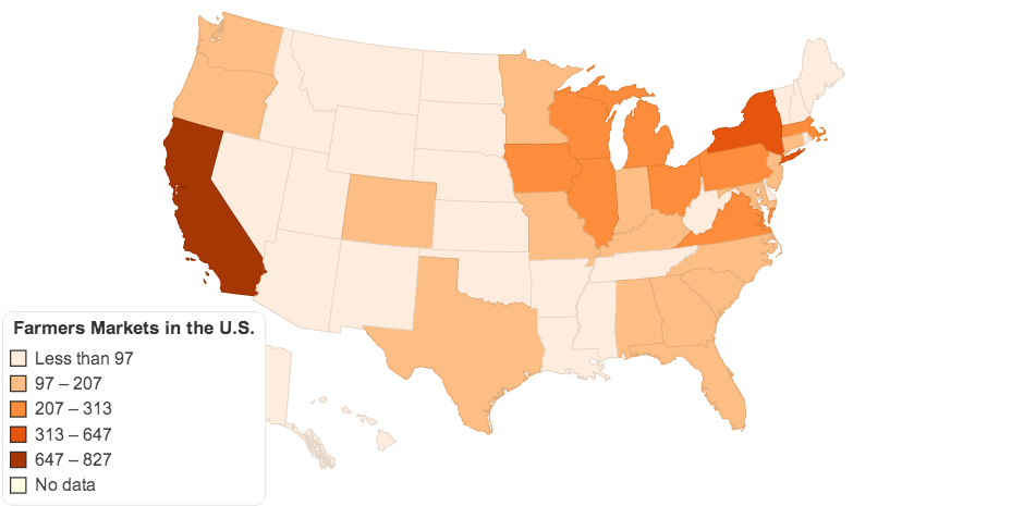 Farmers Markets in the U.S. shown by state.