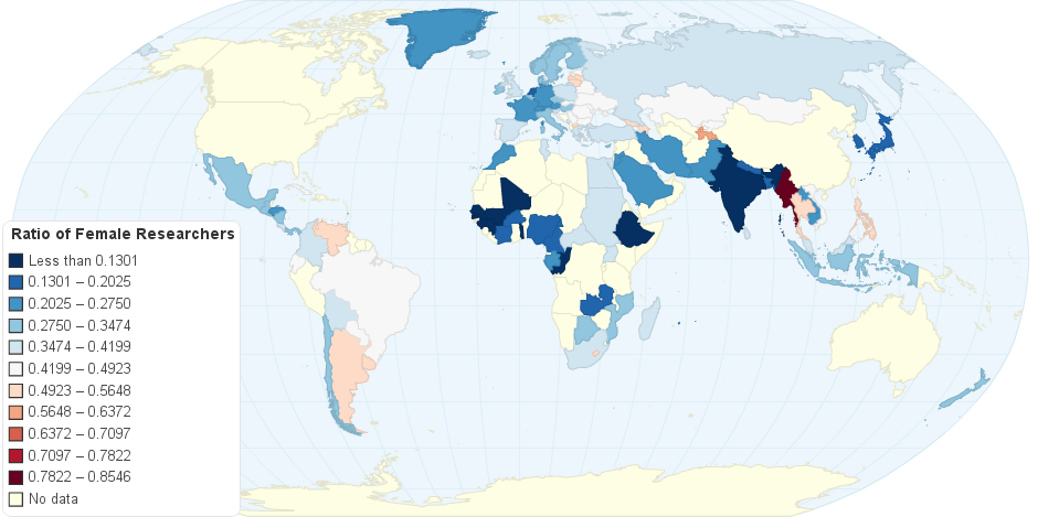 Ratio of female researchers based on http://chartsbin.com/view/1123