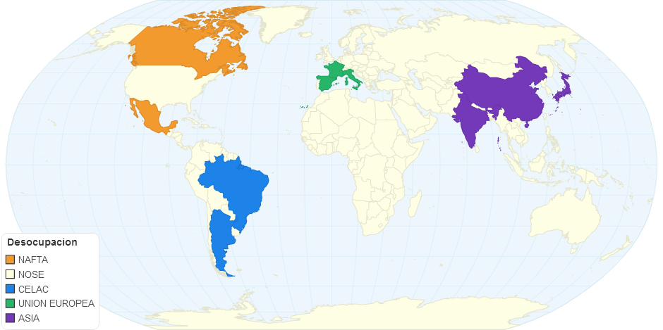 En este grafico pretendemos resaltar los niveles de desocupacion de los paises mas importante de los bloques economicos con los que nos encontramos trabajando- (nafta,celc,asia, union europea)