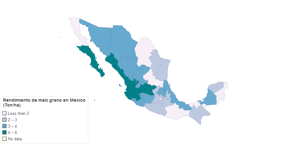 Rendimiento de maiz grano en Mexico (Ton/ha)