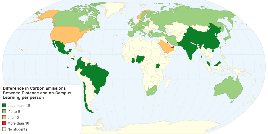 Difference in carbon emissions between distance and on-campus learning in UoE for all Geosciences students, Personal data, viewed 29th July, 2013.