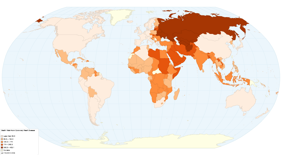 Deaths from CHD per 100,000.WHO World Health Statistics 2011