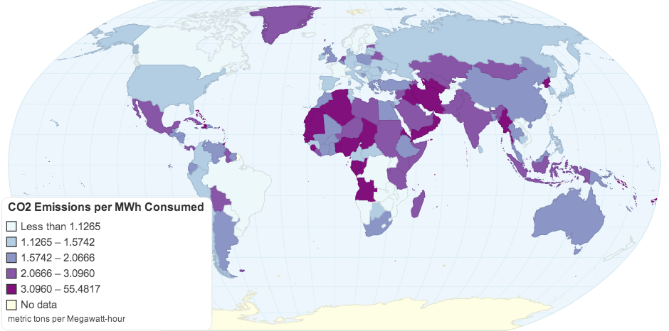 Metric tons of CO2 emitted per Megawatt hour of electricity consumed