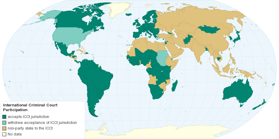 This map shows country's acceptance of International Criminal Court (ICCt).