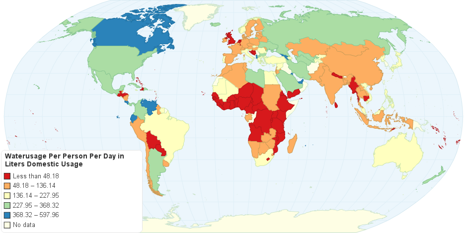 Waterusage Per Person Per Day in Liters Domestic Usage