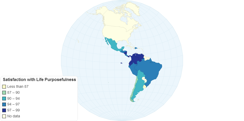 Data show that satisfaction with one's purposefulness in life is not a consequence of wealth or income nor is it highly correlated with heath and education within the Latin American countries studied. It is related to satisfaction with one's social network and probably a direct result of meaning for living acquired from a culture of highly cohesive families and small communities.