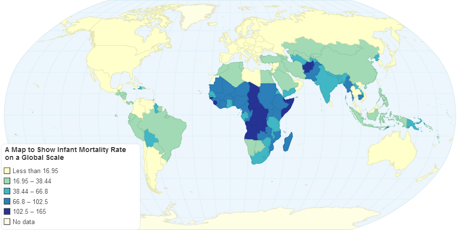 This map is a graphic representation of the number of children who die before the age of five. Data was gathered from www.gapminder.com