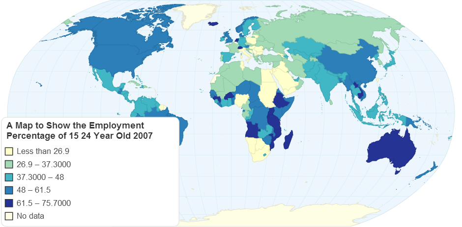 A map to show the employment percentage of 15-24 year old (2007)