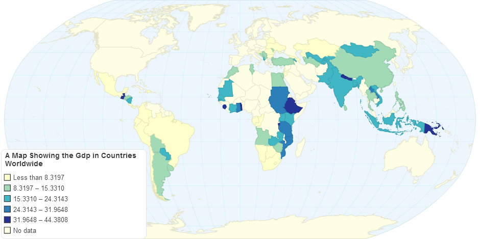 This map shows the GDP of countries on a worldwide scale. This also has a key which has different countries in different colours to show the range of GDP.