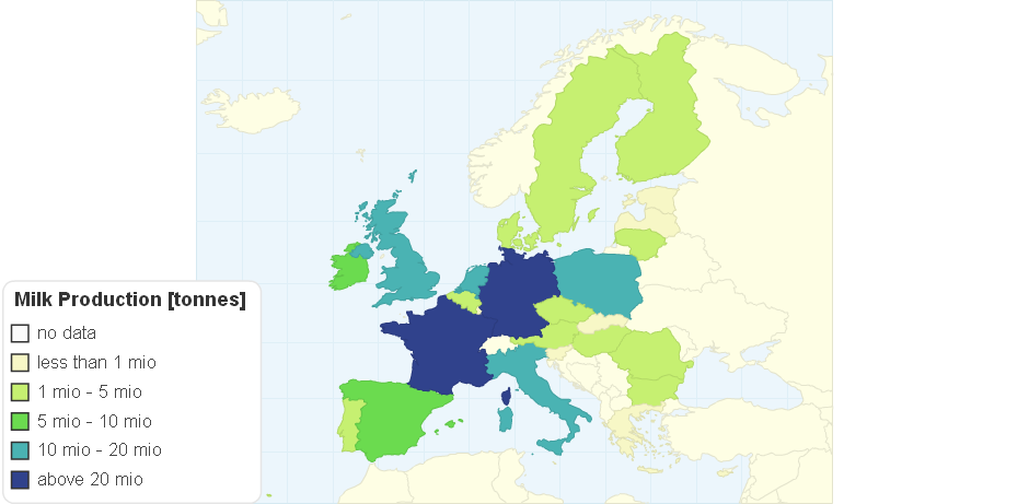 Production of cow milk (whole, fresh) in the countries of the European Union in 2011