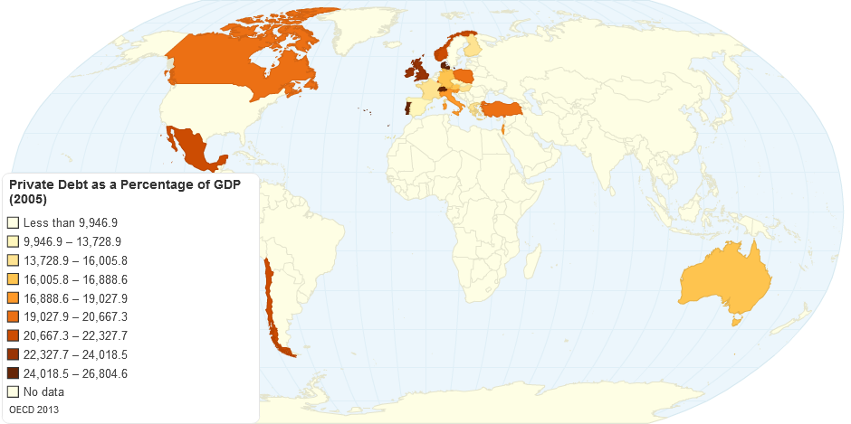 The percentage of Gross Domestic Product (GDP) paid for with borrowed money from the private sector