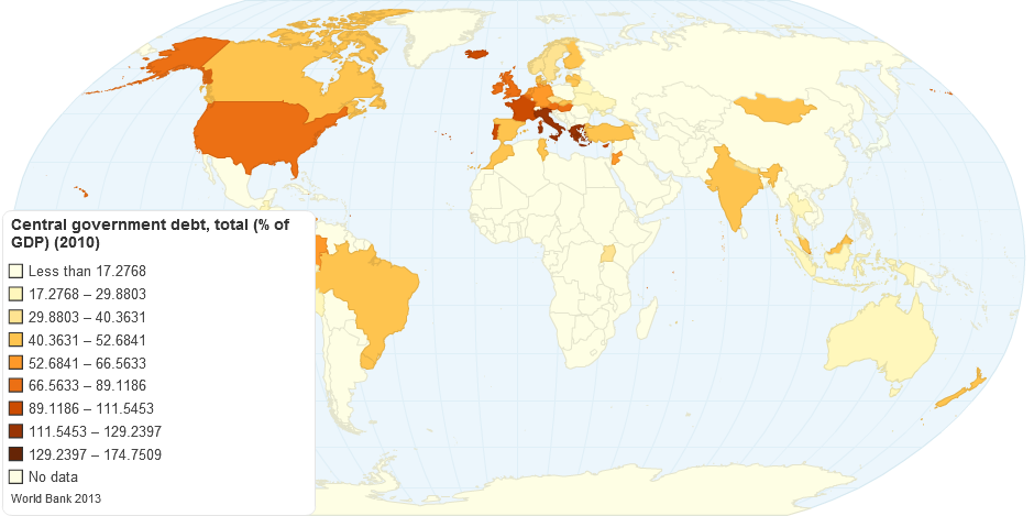 The gross amount of governmental liabilities reduced by the amount of equity and financial derivatives held by the government.