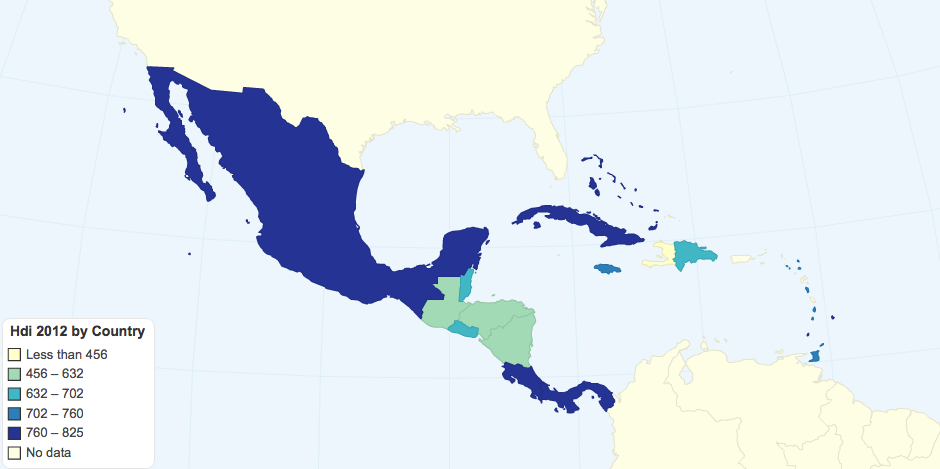 map caribbean central american hdi in 2012