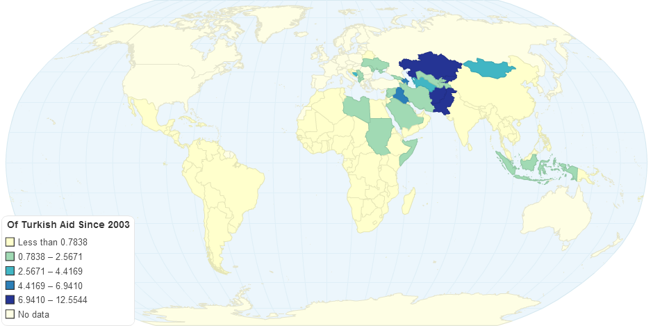 Each DAC recipient's share (%) of foreign aid given by Turkey since 2003.