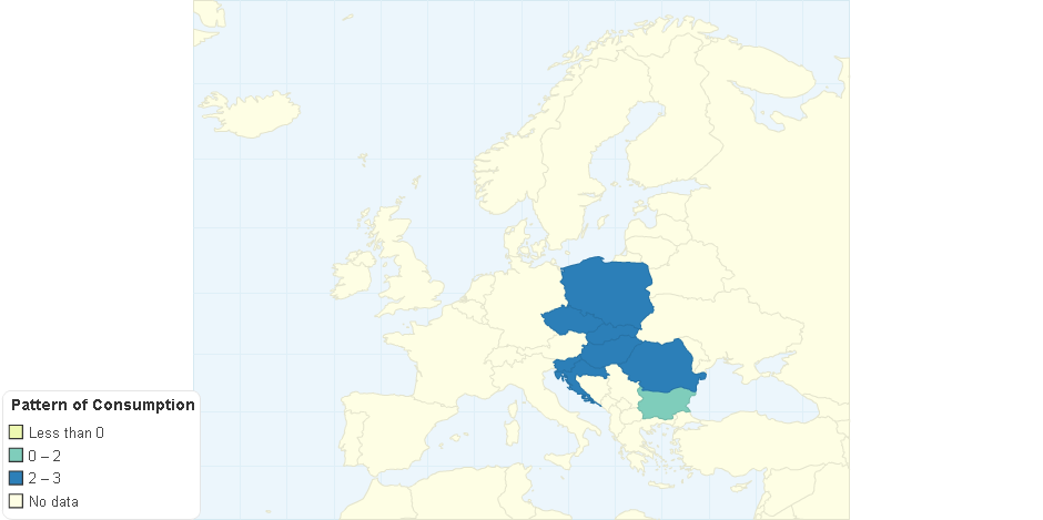 This map is showing that in the neighboring countries from Central and Eastern Europe the pattern of consumption for alcohol is the same.