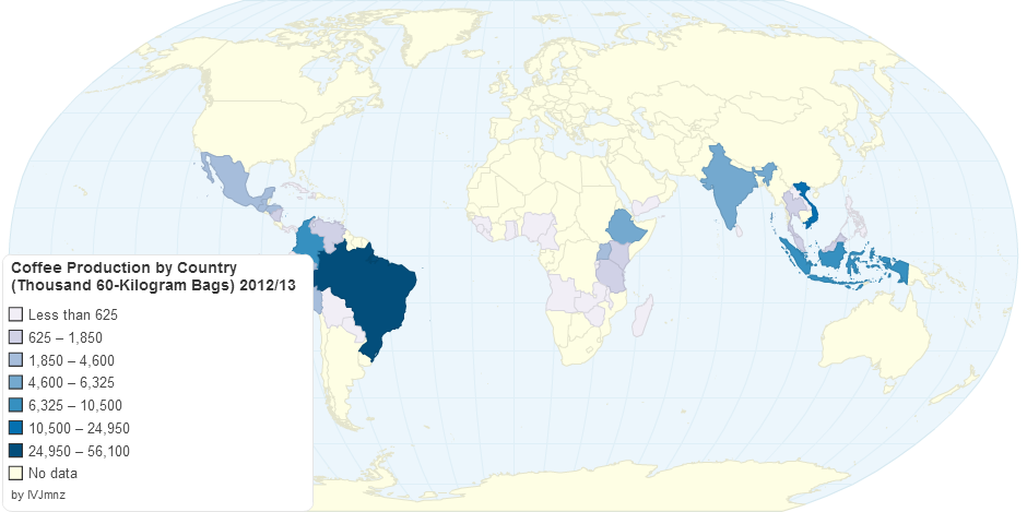 Coffee Production by Country (Thousand 60-Kilogram Bags) 2012/13